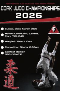 The Kano Samurai Judo Club will host the Cork Open Judo Championships on Sunday 22nd March in Mahon Community Centre, Cork City.